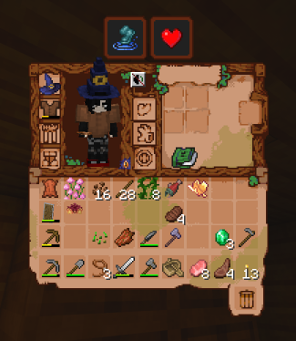 Between the chests in the beach house and another chest I found in a shipwreck, my character's outfit surely is....something. Maybe I'll update this post with a little sketch. Pictured is me wearing red crocs, a witch hat, leather top, and backpack over a generic emo skin.